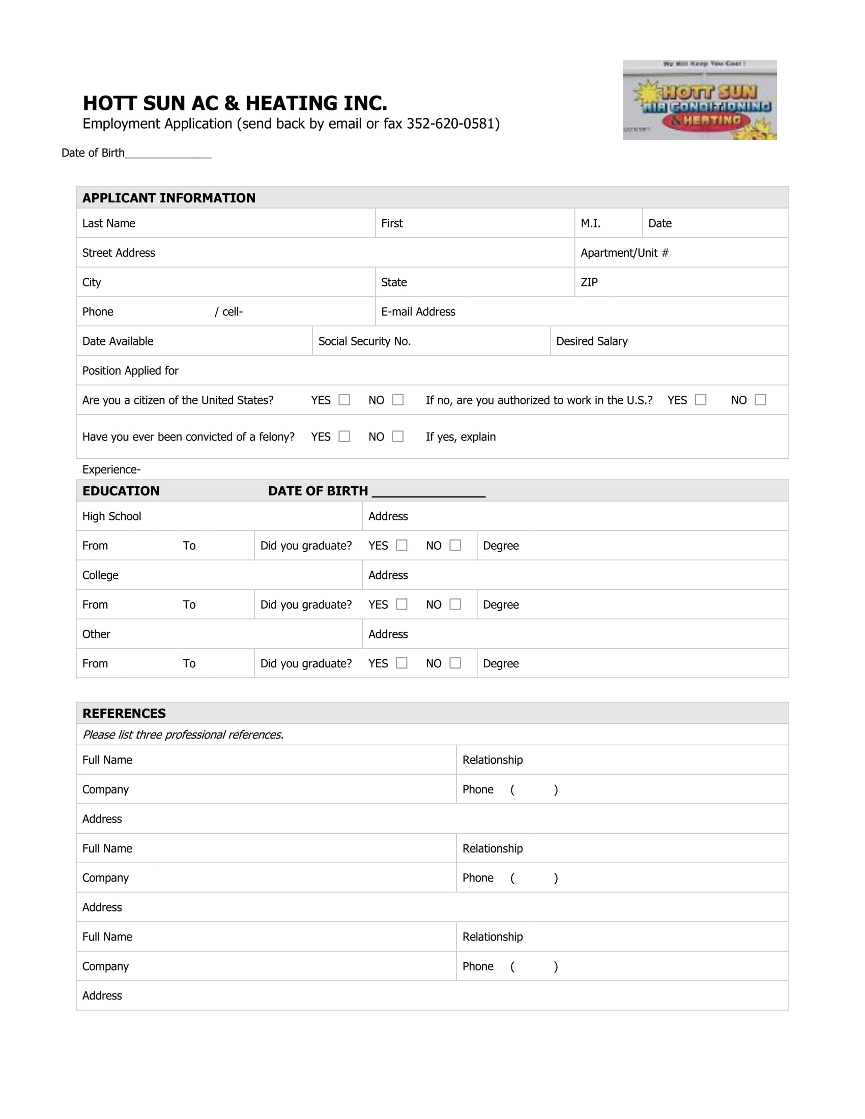 Employment Application : email to info@hottsun.net